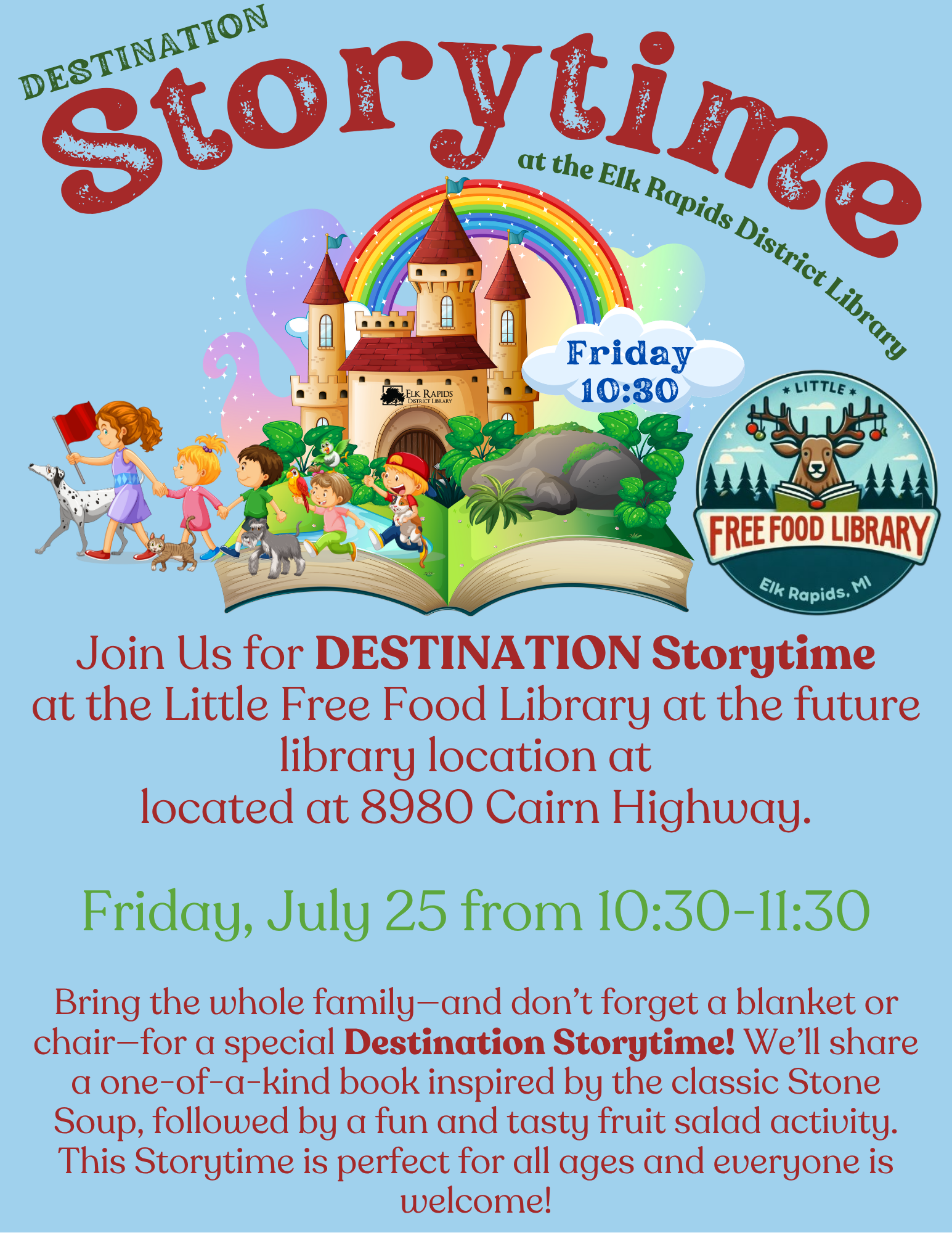Join Us for DESTINATION Storytime at the Little Free Food Library at the future library location at located at 8980 Cairn Highway.