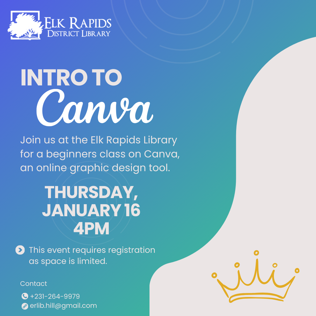 Call the library at 231-264-9979 to sign up for a beginning Canva class.