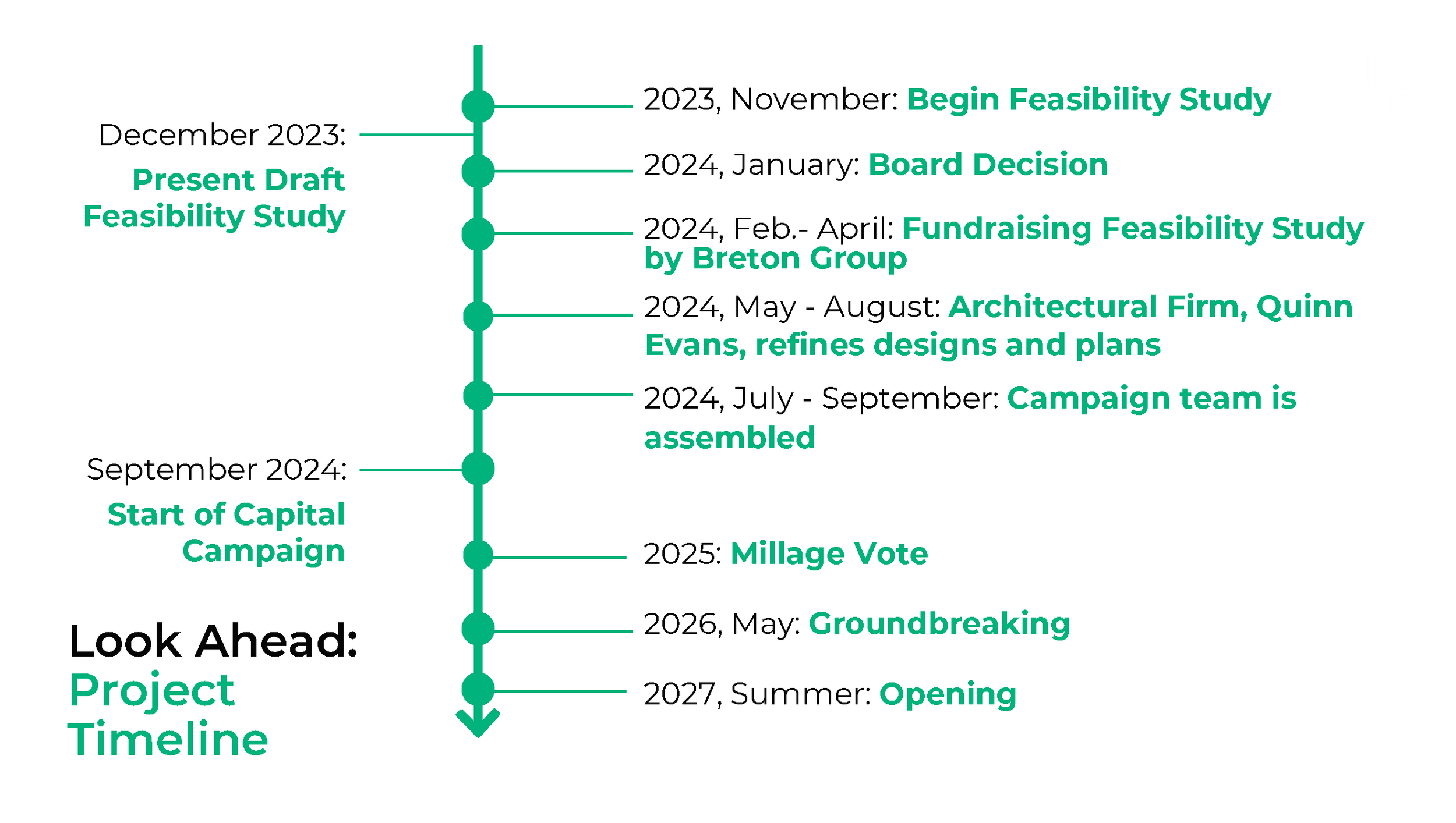 We are now moving forward with a phased approach to the project, focusing on a fundraising with a blend of private contributions, foundation grants, and business support.